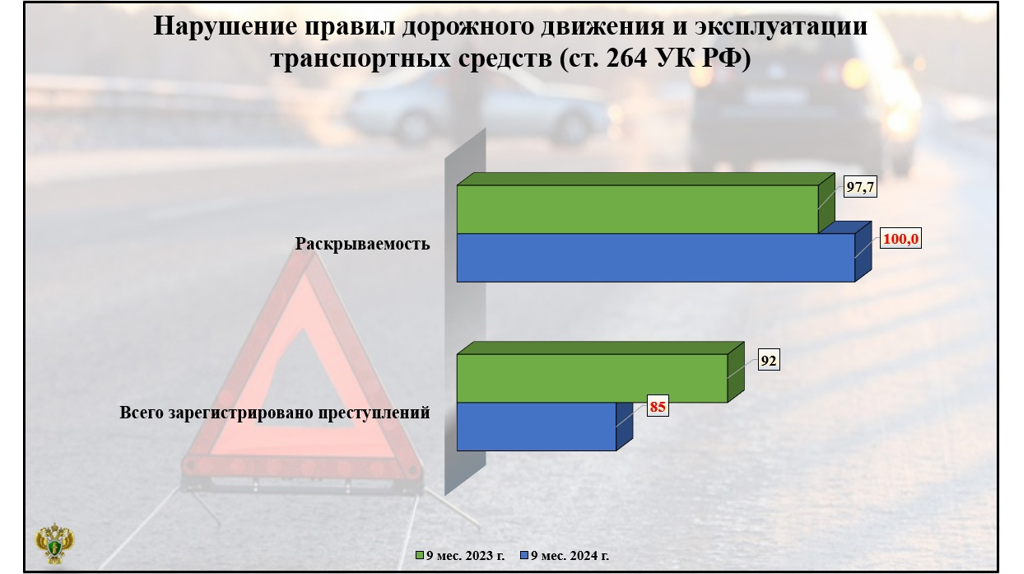 Прокуратура Брянской области проанализировала статистические данные о преступлениях в сфере нарушения Правил дорожного движения. Об этом сообщает пресс-служба ведомства. За девять зарегистрировано 85 преступлений данной категории. Это на 7,6 процента меньше, чем в аналогичном периоде прошлого года. Наибольшее их количество зафиксировано в Бежицком и Володарском районах Брянска, а также в Брянском, Жуковском, Унечском районах и городе Дятьково. В основном преступления данной категории совершены безработными. На Брянщине за девять месяцев зарегистрировали 85 преступлений в сфере нарушений ПДД