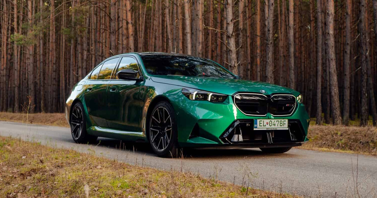 BMW M5 не нуждается в яркой окраске или ярком интерьере, чтобы привлечь толпу. Тем не менее, он может стать ещё более привлекающим внимание суперседаном в такой дикой конфигурации, как эта. G90 модифицирован так, чтобы производить впечатление, в Isle of Man Green с интерьером Kyalami Orange. Это сочетание каким-то образом работает. Крыша из углеродного волокна и корпуса зеркал добавляют привлекательности четырёхдверной ракете. Седьмое поколение M5 было заснято в прекрасном осеннем пейзаже по прибытии в Словакию. Если вы не поклонник этих двухцветных дисков, BMW предлагает тот же комплект 951 M с полностью чёрной отделкой. В качестве альтернативы есть другой комплект 952 M с двухцветным внешним видом, который, кажется, в моде в Мюнхене в этом году. По тормозным суппортам можно понять, что у этого автомобиля стандартные тормоза M Compound, которые также предлагаются с красными или синими суппортами. В качестве альтернативы опциональные карбон-керамические тормоза имеют золотые суппорты.