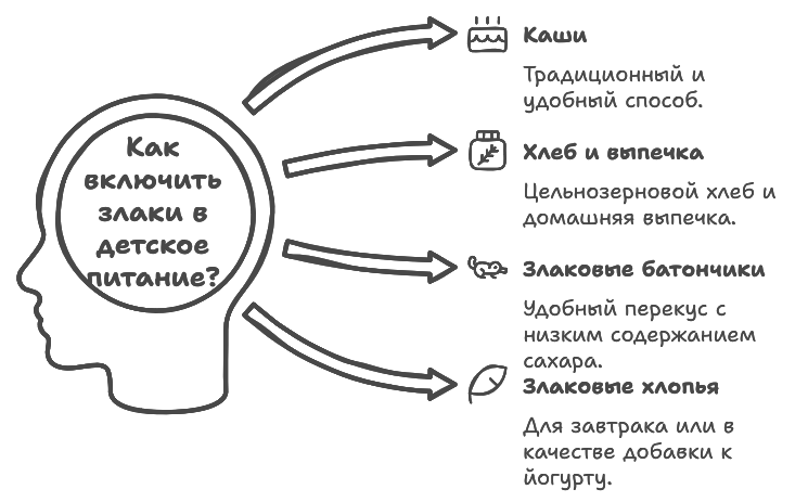 Каждый вид злаков имеет свой уникальный набор питательных веществ, поэтому важно включать в рацион ребенка разнообразные злаковые продукты.