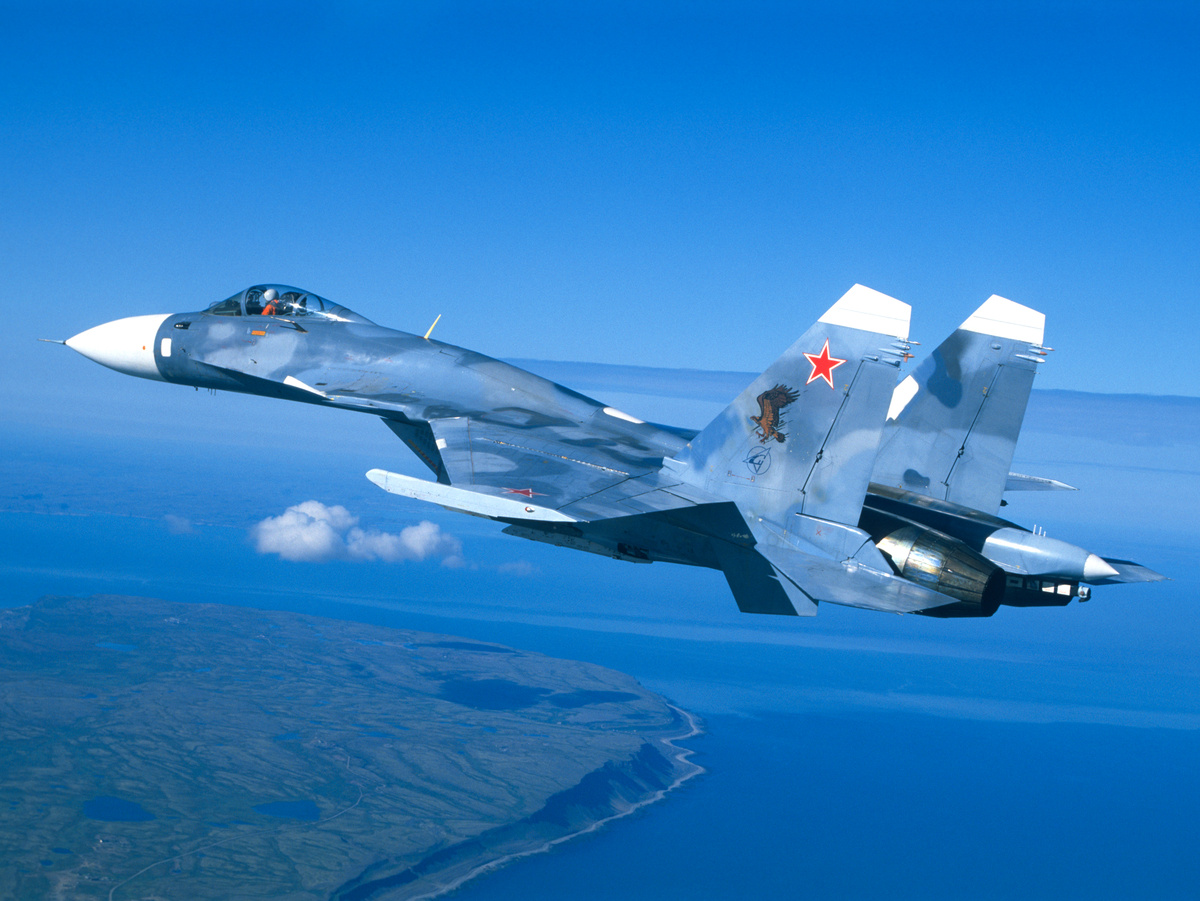 В апреле 1993 года группа инженерно-технического состава принимала на заводе Су-27К. Без согласования с командирами они привезли с собой чертежный тубус с заранее подготовленными трафаретами этого самого орла. Уж больно технарям и летчикам понравилась увиденная где-то на наклейке картинка. Технари договорились с заводскими малярами, которые с удовольствием накрасили орлов на килях новеньких «сушек». Когда машины перегнали на аэродром базирования, командование посчитало, что это – фирменные заводские эмблемы, и вопросов не возникло. А через несколько лет тайна раскрылась, но орлы остались, виновные в самоуправстве – тоже. А 2-я АЭ этого же полка под килевым номером имела эмблему в виде головы тигра с раскрытой пастью.
