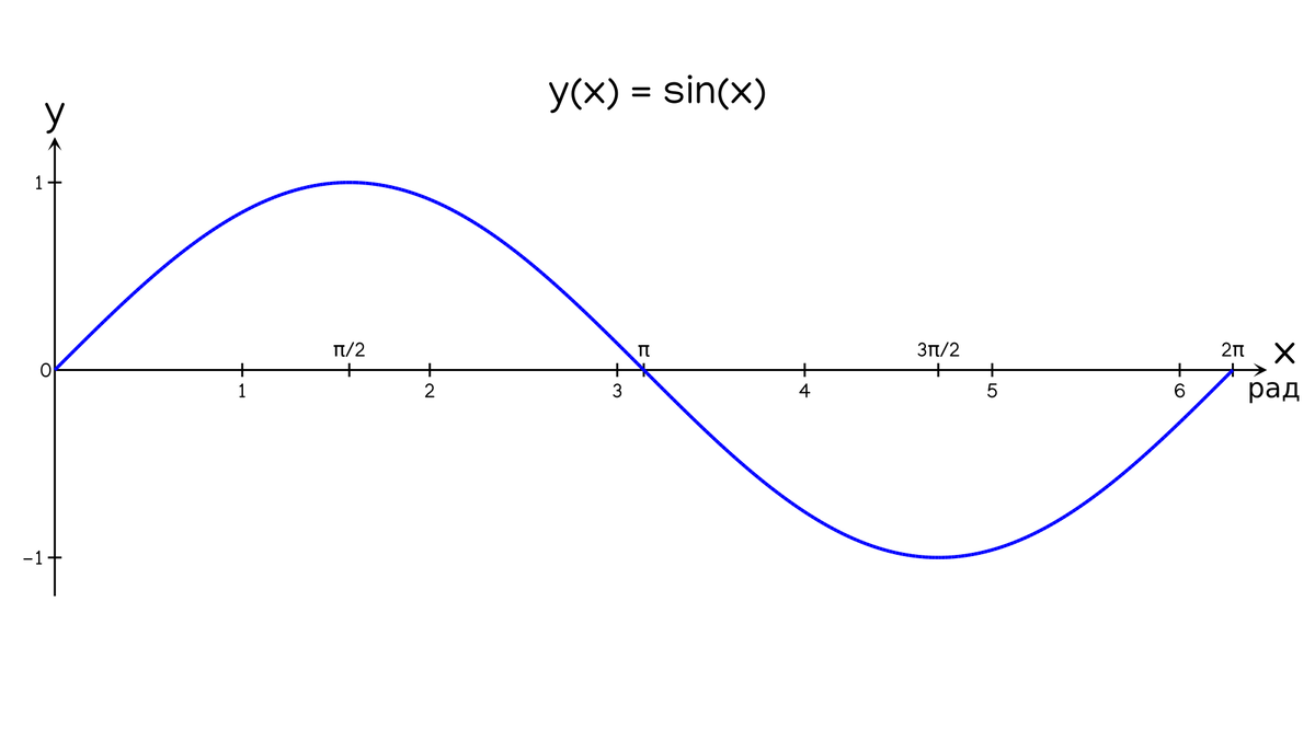 Итак, в предыдущей статье мы построили графики функций синус и косинус и установили, что графики этих двух функций идентичны по форме кривой графика, просто сдвинуты по оси абсцисс на величину π/2. Поэтому мы можем остановиться на рассмотрении только графика функции синус, внешний вид которого получил название синусоида.