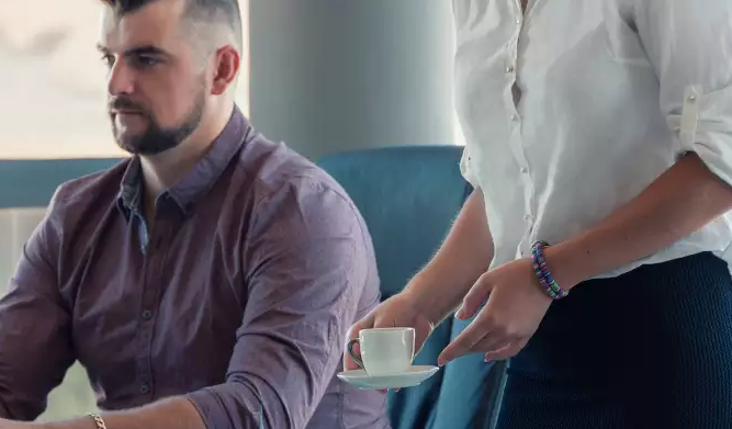 - Дура блин! Чего по сторонам смотришь, когда горячий кофе ставишь!