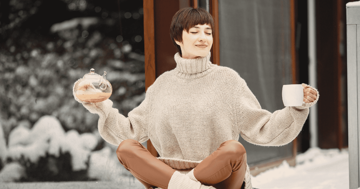 Чтобы усилить особую атмосферу, можно собраться не за привычным столом, а устроить импровизированный пикник: расстелить на полу пледы, вокруг расставить вазочки с орешками и печеньем, налить в чашки ароматный чай на травах.