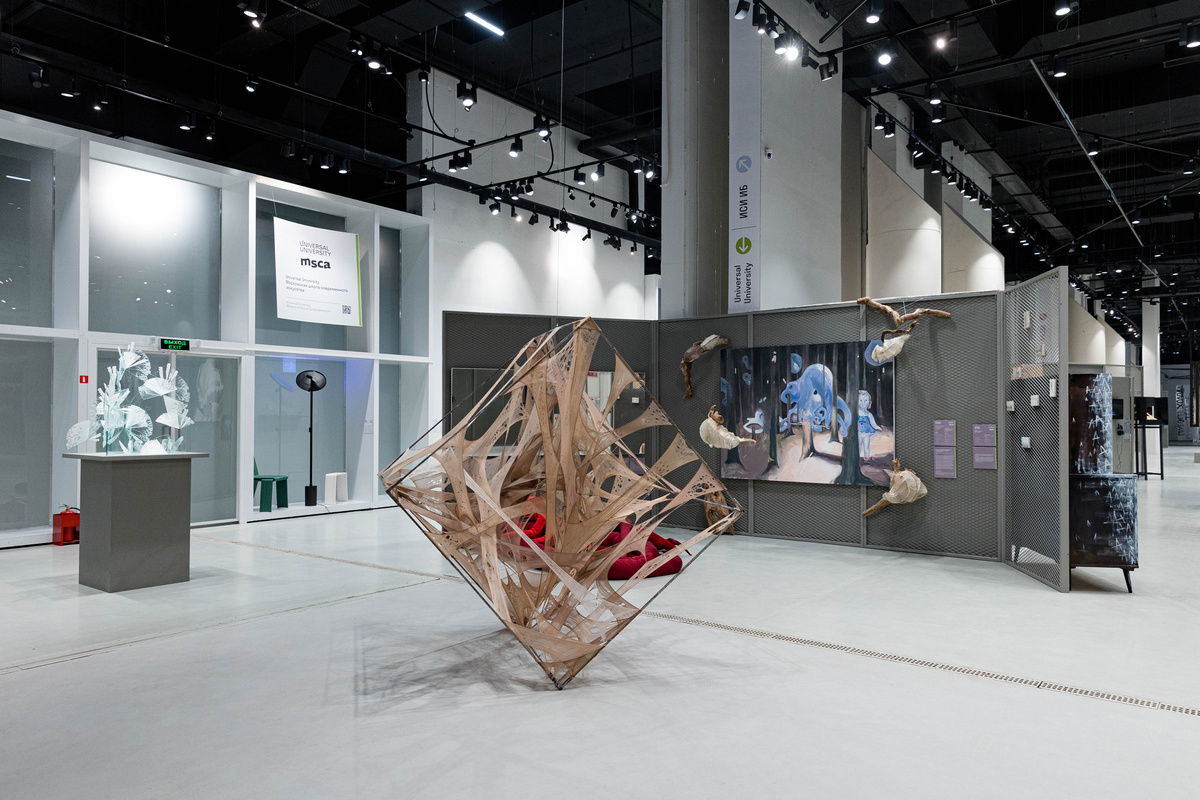 В парке «Зарядье» проходит ежегодный смотр дипломных работ выпускников художественных вузов «Выпуск-24». В Паркинг-галерее представлено более 300 работ, созданных 210 выпускниками 22 учебных заведений. На примере семи экспонатов «Сноб» рассказывает, какие темы волнуют молодых художников сегодня. Сталь и капрон в работе молодой художницы Елены Суровой символизируют жесткие границы и желание их нарушить. Металл — это ограничения, в которых часто живет человек, а капроновая ткань символизирует гибкость и желание вырваться за пределы структур. Ребра куба прочны и нерушимы, но внутри него находится эластичный материал, который может менять форму, подстраиваться при определенном давлении, даже внутри жестких рамок. Так автор сообщает, что сила — в искусстве балансировать и создавать новое. Художница Ярослава Евсевлеева размышляет на тему степени проявления личности в публичном пространстве. Может ли современный человек сохранять личное пространство в эпоху интернета, соцсетей, баз данных и в