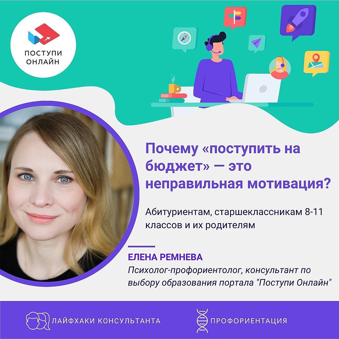 Большинство абитуриентов стремится поступить на бюджет. Это отличная цель, но только если она не превращается в главную цель поступления. Почему? Объясняет Елена Ремнева — психолог, профориентолог и консультант по выбору образования портала "Поступи Онлайн" 👇🏻 Не принимайте решение на эмоциях, из страха от мысли, что останетесь «нигде» после школы. Выход всегда есть! Выбирайте образование осознанно на основании своих интересов. А наши специалисты всегда рады вам в этом помочь на консультациях поступающим.