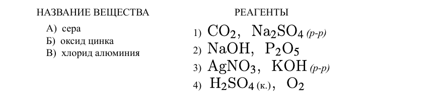 Установите соответствие между названием вещества и реагентами, с которыми это вещество может взаимодействовать.