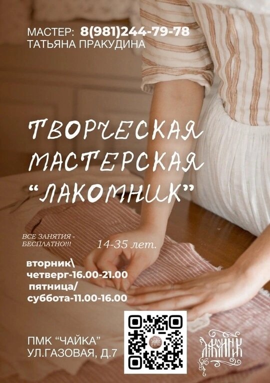 Семейный патриотический клуб | творчество | студия вокала Молодежный клуб «Чайка» — это место духовного и патриотического развития. Здесь обсуждают актуальные темы с психологами и священниками, организовывают досуг и отмечают даты, о которых нельзя забывать. С нами ты можешь БЕСПЛАТНО: - Обучиться вокалу и петь в хоре - Заниматься рукоделием в студиях «Лакомник» и «Бисероплетение» - Участвовать в благотворительных акциях - Стать частью проекта «Родники памяти» для помощи ветеранам - Сыграть в кукольном театре «Жар-птица» - Посещать лекции и встречи с духовными наставниками Это структурное подразделение Петроградского молодежного центра (СПб ГБУ "ПМЦ "Петроградский") Газовая ул., 7, Санкт-Петербург, Россия, 197136, Россия, Санкт-Петербург