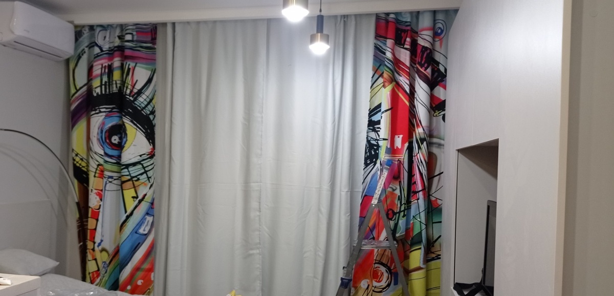 Все бы было так хорошо, как хотелось бы - но не все так делается быстро, как можется, а как хочется быстро - совсем не получается! Такая лень нас под конец ремонта обуяла - что совсем никак... Но со шторами надо "добивать" - новые уже пришли - 5 штук разных. Три из них мы сразу вернули - вообще тональности не те. Девочки в ПВЗ Валдбериса смеялись: - Опять ваша серость пришла! - и в очередной раз оформляли возвраты. И вот остались одни и тадам!!! Ура!!! В тютельку! Ух, как ярко смотрятся наши "глазки", но... Но не лишними. Они как раз дают "ребячливость" и "нескучность" интерьера. А вот шторы при приглушенном свете... И наконец-то прикрепили на стены "пилястры" - черт, забыла как они называются - дюрополимерные эти штуки... Дизайнер хотела их черным цветом выделить - примерно вот так... НО мы с Игорем посмотрели, приложили, померили, прикинули и я завыла белугой: По мне и так весьма нормальненько! А уж если взялись за них, то и продолжили - отделяем кухню от коридора... Долго пример