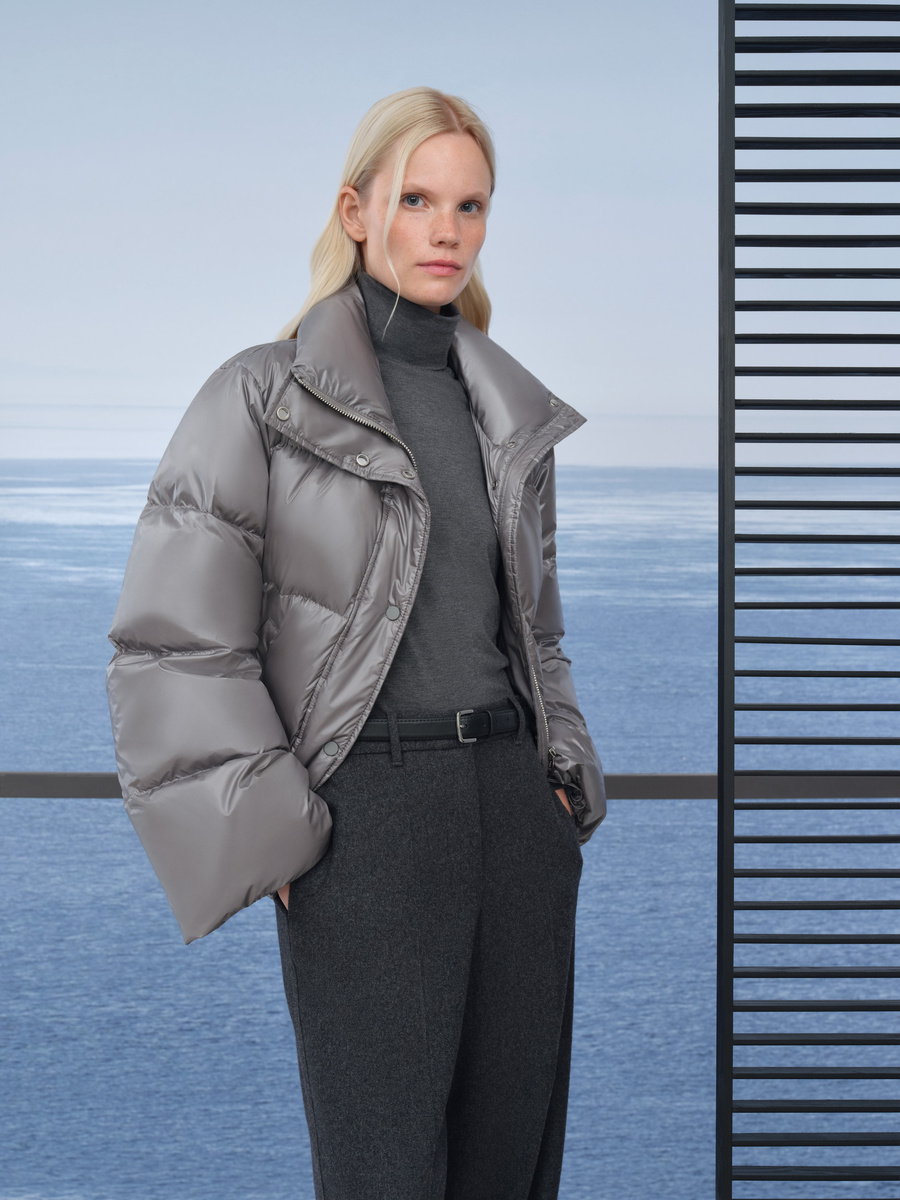 Важная особенность пуховиков длины мини — способность создавать эффектные силуэты. Они подчёркивают фигуру, акцентируя внимание на ногах, и удачно сочетаются с разными вариантами низа: брюками, джинсами, юбками, платьями.