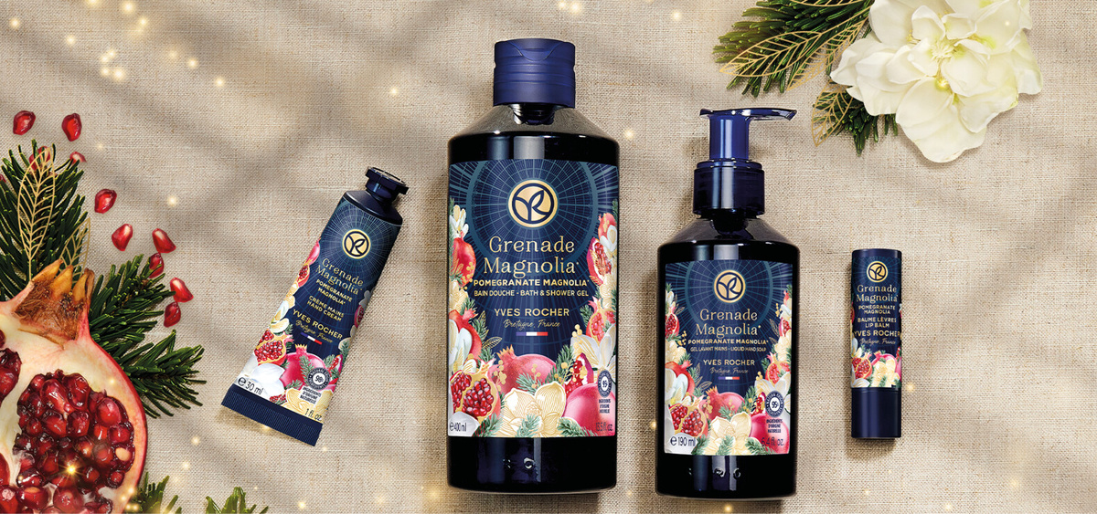 Французский бренд Yves Rocher, выпускающий растительную косметику и парфюмерию, показал праздничную коллекцию, приуроченную к предстоящим рождественским и новогодним праздникам. В ней представлены три аромата: Grenade Magnolia, Vanille d’Orchidée и Karité & Lait de Châtaigne, адвент-календарь и декоративная косметика. Новинки уже доступны в продаже на сайте российского интернет-магазина марки. «Ощутите новогоднюю магию уже сейчас! Под величественными сводами Зимнего Сада Yves Rocher блестят яркие звёзды, а в лунных бликах танцуют сотни драгоценных сверкающих цветов. Выберите аромат своего праздника из нашей новой лимитированной коллекции», – цитата бренда. Композиция аромата Grenade Magnolia сочетает в себе ноты сочного персика, апельсина, граната и свежего ревеня, дополненные оттенками морозника, магнолии, ванили, мускуса и сандала. Аромат Vanille d’Orchidée раскрывается нотами ванили, которым на смену приходит цветочный аккорд из нот иланг-иланга, жасмина и орхидеи, окутанный в ф