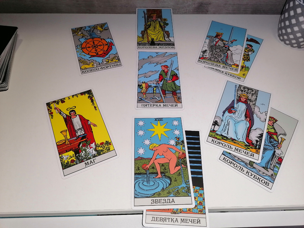 Вот и добрались мы до Ольги, той, которая Хозяйка медной горы сама себе.🤗 Месяц у Ольги будет насыщенным, скучать не придётся😉 Расклад выглядит так: Вангую🧐 Итак, карта месяца Пятёрка Мечей. У этой карты несколько значений. Это может быть конфликт и какое-то столкновение интересов. Это может быть ситуация "не по плану". А ещё, возможно Ольга уже давно хочет что-то сделать и всё откладывает, откладывает, откладывает на завтра. А утром встаёт - а сегодня снова сегодня.😁 Вот эти отложенные дела Олю и ухватят за зад в ноябре. На работе будет какое-то решение спорных вопросов. Задачи, которые могут вызвать неуверенность. Но Оля соберёт в кулак волю и смело пойдёт вперёд как будто сваи вколачивает. Ещё Королева Мечей - это интеллектуальная помощь и наставничество. Ольга - факт - будет много работать. На финансы выпала Звезда. Это карта веры и надежды. Лично я всегда верю и надеюсь, что завтра проснусь богатой, но для Оли вытащила дополнительную карту. Девятка Мечей - карта уныния. Во