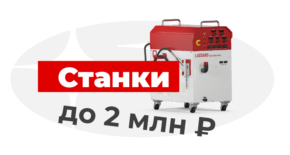Если вы ищете лазерный станок в бюджете 2 млн руб, то вы можете приобрести даже не один, а два станка, например, многофункциональный станок для сварки, резки и очистки WELDER MINI и компактный лазерный гравер GRAVER COMPACT. В таком бюджете вам подвластны все виды ручной лазерной металлообработки: сварка, очистка, гравировка, маркировка, и даже резка — всего 8 моделей. Лазерные технологии сейчас доступны как никогда!