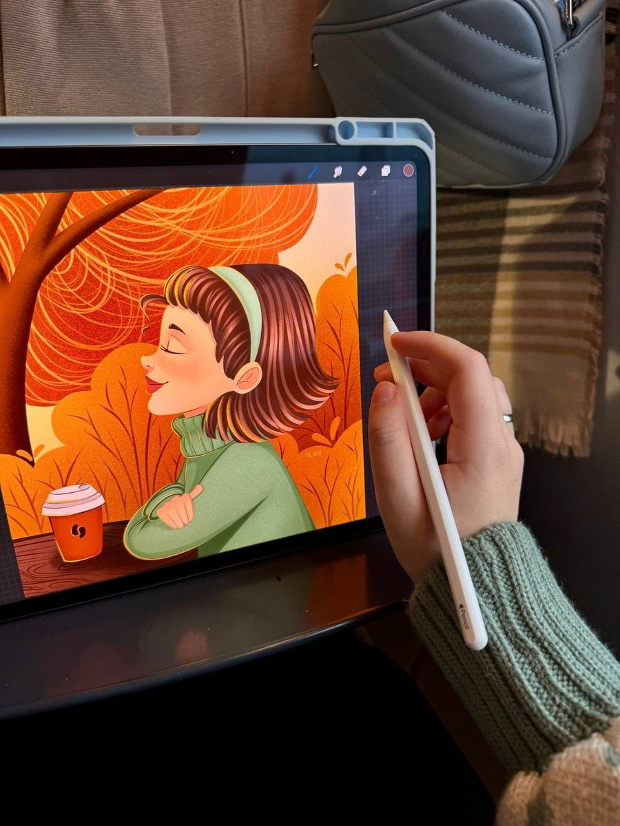 В итоге нарисовала эту осеннюю иллюстрацию, пока ехали в поезде. Как думаете, сколько на нее ушло времени?