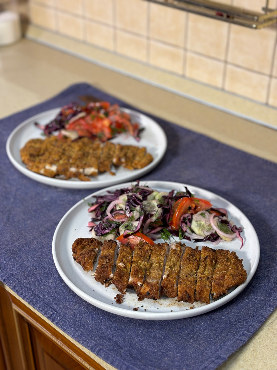 Простой, пошаговый рецепт Подготовьте ингредиенты: ✅мясо, у меня свинина карбонат нарезанная кусками толщиной 1-1,5 см 400 гр ✅яйца 2 шт ✅панировочные сухари 100 гр ✅соль ✅масло подсолнечное 400-500 мл ✅мука 3 столовые ложки Шаг 1 Хорошо отбейте мясо, для удобства заверните его предварительно в пищевую пленку, сделайте мясо максимально тонким Шаг 2 Разбейте яйца и размешайте их в отдельной тарелке. Выложите панировочные сухари в отдельную тарелку, также в отдельной тарелке насыпьте муки Шаг 3 Посолите мясо, хорошо обваляйте в муке, после окуните в яйца и затем в панировочные сухари Шаг 4 Разогрейте подсолнечное масло, важно чтобы масло не горело, сделайте огонь чуть выше среднего Шаг 5 Опустите шницель в сковороду, обжаривайте до золотистости с обеих сторон. Готовый шницель достаньте из масла и выложите на бумажное полотенце, чтобы стекло лишнее масло Шаг 6 По желанию нарежьте и подавайте на стол с салатом или любым соусом на Ваш вкус #еда #foodблогер #рецепты #шницель