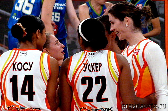 Баскетболистки УГМК одержали очередную победу в регулярном чемпионате Премьер-лиги. В Оренбурге подопечные Дмитрия Донскова встречались с крепкой «Надеждой» и взяли верх, прежде всего, за счет удачного дебюта. Старт игры прошел в равной борьбе и соперницы попеременно вели в счете. Но к середине отрезка начало обозначаться заметное превосходство «лисиц». Один за другим зашли трехочковые от Жосселины Майги, Ксении Левченко и Александрии Бентли, а затем Меган Уокер сыграла на добивании, и разница стала двухзначной. На этом гостьи не остановились, а еще один точный дальний бросок Виктории Третьяковой обеспечил им комфортный перевес по итогам десятиминутки – 11:26. Во втором периоде хозяйки паркета вновь проявили неуступчивость. Впрочем, «Надежда» демонстрировала много брака при завершении атак, что не позволяло отрыву сокращаться. Лишь ближе к концу четверти оренбурженки выдали удачный отрезок. Эшли Беверли, Виктория Медведева и Дарья Игнатова вернули «Надежду» в игру. Однако Уокер и Бентл