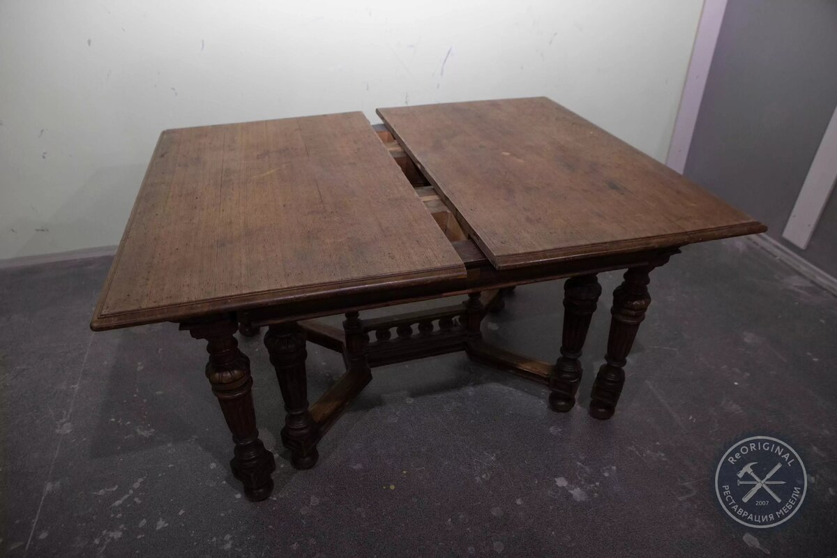 Реставрация антикварного стола изготовленного из массива дуба 1900 года.