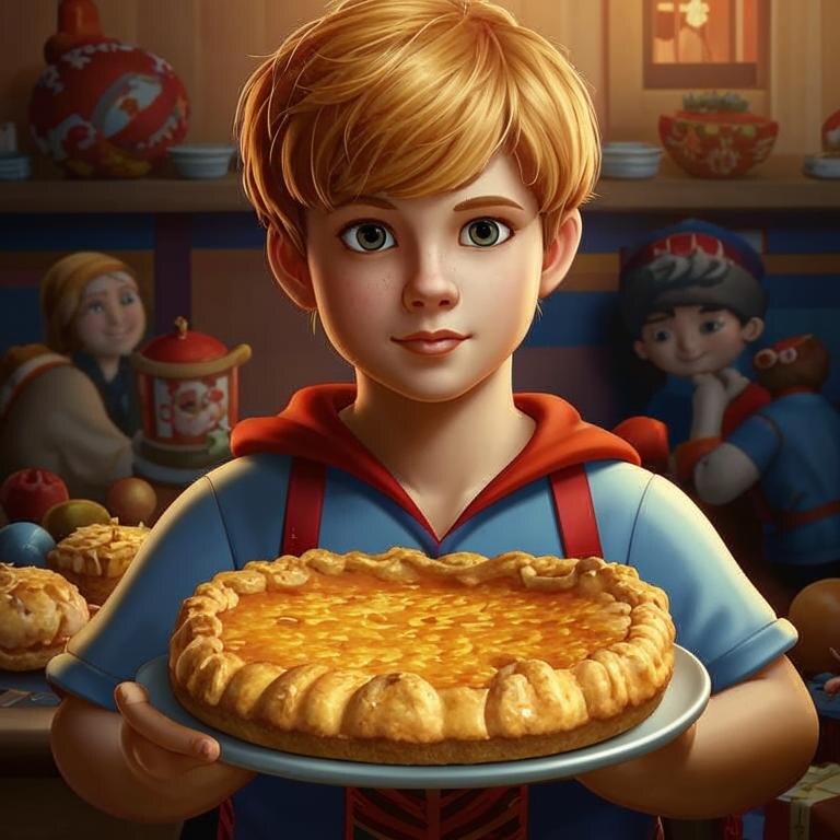 Утро началось с яркого солнца, которое пробивалось через окна кухни. Агата и Платон сидели за столом, обсуждая планы на день. — Сегодня сделаем что-нибудь особенное, — предложила Агата. — Может, испечём шарлотку для наших друзей? Платон улыбнулся. — Отличная идея! Давайте начнём прямо сейчас. Они отправились на кухню и принялись готовить. Агата нашла рецепт в интернете, а Платон помог собрать все ингредиенты. Вскоре кухня наполнилась ароматом яблок и корицы. Тем временем остальные члены команды, включая СуперМатюшу, Богдана, Гришу и Егора, играли во дворе. Они слышали запахи из кухни и с нетерпением ждали, когда же их пригласят на чай. — Когда же будет готова наша шарлотка? — спросил Богдан, заглядывая в окно. — Потерпи, скоро будет, — ответила Агата, смеясь. Прошло некоторое время, и мальчики начали терять терпение. Они постоянно заходили на кухню, спрашивая, сколько ещё осталось. — Ещё немного, — говорила Агата каждый раз, пытаясь сосредоточиться на выпечке. Наконец, когда шарлотка б