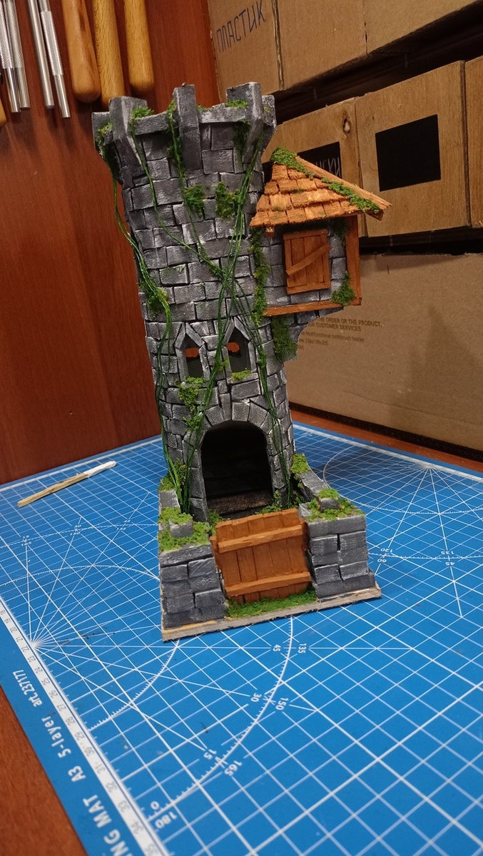 Всем доброго времени суток. Любит у меня дочь разные настолки. Но есть проблема с кубиками, которые постоянно улетают со стола. Можно конечно воспользоваться и коробкой, но хотелось что-то поинтереснее. Решил попробовать сделать башню для кубиков. И вот что из этого вышло. За основу взял банку от чипсов. Ну и тут понеслось, кирпичики, кубики, клей. Приделал небольшой бокс для хранения кубиков. Ну и началась отделка, покраска. Немного грязи, мха, плесени. Ну и почти финальный вариант. Осталось немного подкрасить, покрыть лаком и готово. Ну и небольшое видео результата. Всем спасибо за просмотр. Пост автора mr.pany. Читать комментарии на Пикабу.