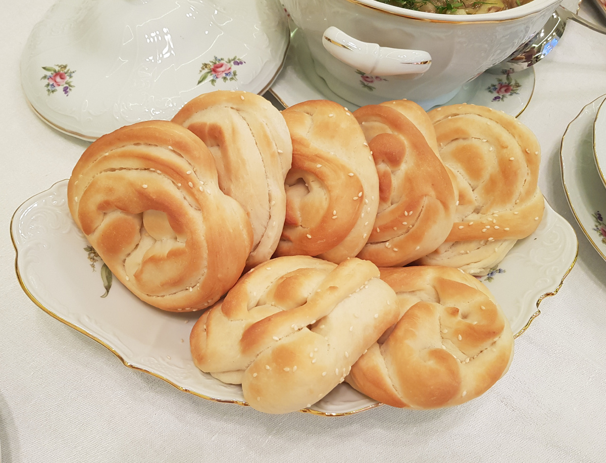 Добрый день, дорогие друзья! Сегодня я хочу поделиться с вами рецептом быстрого дополнения к супам в виде свежих булочек. Для приготовления нам понадобятся: 500 грамм готового, сдобного теста, 1 столовая ложка кунжута, 1 столовая ложка масла из виноградных косточек, 2 столовые ложки муки. Приготовление: Поверхность для раскатывания теста посыпать мукой, скатать из тесто жгут и разделить его на 8 равных частей. Раскатать в виде лепёшек тесто. Нанести растительное масло и посыпать кунжутом. Каждую лепёшку свернуть трубочкой. Надрезать в середине. Вывернуть заготовку, подворачивая края. Выложить на противень, застеленный пергаментом. Поместить противень в духовой шкаф на режим пар при температуре 40 градусов Цельсия на 30 минут, если режима пар в духовом шкафу нет, включить режим верхний и нижний нагрев и поставить емкость с водой под противень. Выпекать булочки при температуре 180 градусов Цельсия 20 минут на режиме верхний и нижний нагрев. Вот такие свежие, румяные булочки к щам у