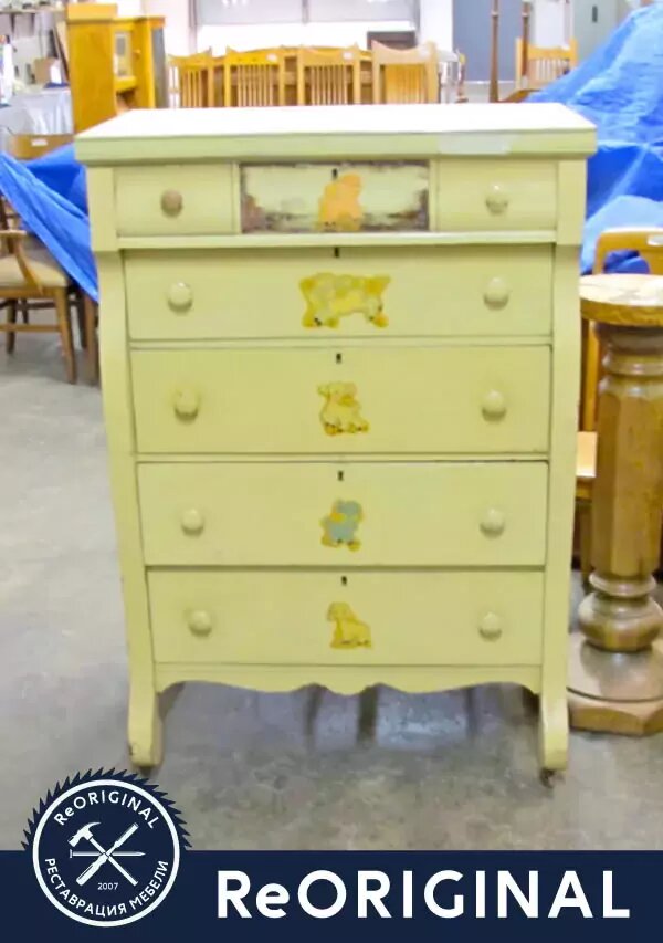 Комод с семью ящиками на колесиках, клиент покрасил масляной краской. Но спустя какое-то время ему перестала нравиться мебель в таком стиле. Он решил сделать ремонт в доме и вернуть мебель в первозданное состояние.https://reoriginal.ru/portfolio/restavratsiya-okrashennogo-komoda/