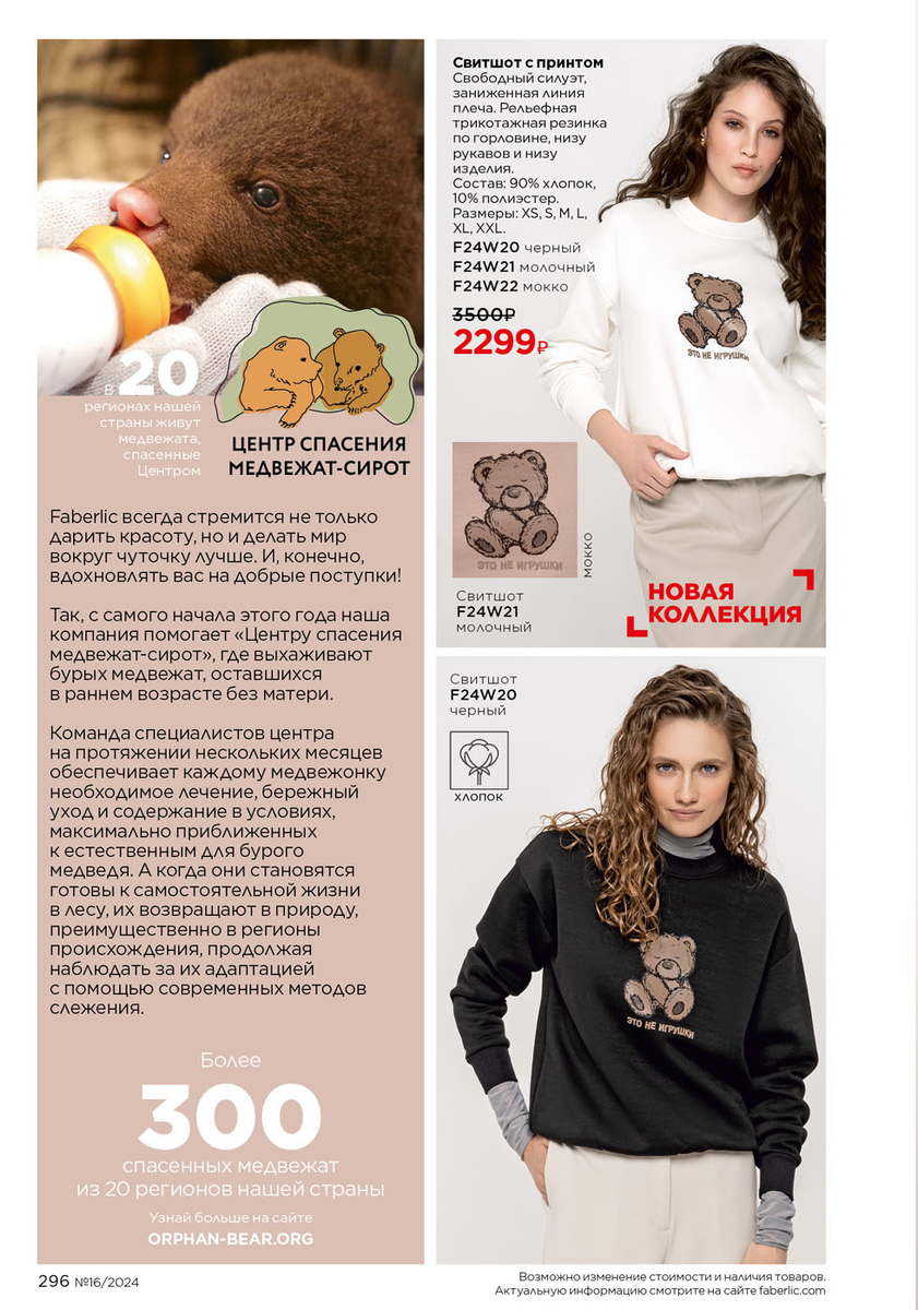 Задание дня счастья-иногда полезно порыться в социальных сетях. Найдите сегодня там что-то новое для себя. Компания FABERLIC, как оказывается, активно участвует в благотворительных и социальных проектах, стремясь сделать мир немного лучше. С началом 2024 года она заключила соглашение о поддержке Центра спасения медвежат-сирот в Тверской области. Здесь, в этом сердце природы, сотрудники заботливо выхаживают бурых медвежат, которые в столь юном возрасте остались без материнской любви. Эти крохи, едва появившись на свет, весят всего 500 граммов и лишены силы, чтобы выжить самостоятельно в жестоком мире. Благодаря усилиям команды FABERLIC, эти маленькие создания получают шанс на новую жизнь, на возвращение в дикие просторы, где их ждет свобода. Содействие таким важным начинаниям подчеркивает, что доброта и сострадание — неотъемлемая часть миссии компании, открывающей новые горизонты для сотрудничества с природой и обществом. Коллекция женской и детской одежды с дизайнерским принтом созда