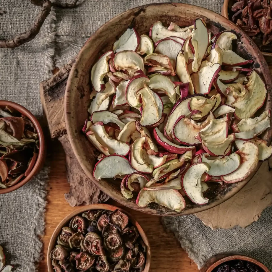 Сушеные яблоки имеют сладкий вкус с легкими карамельными нотками и нежной текстурой. Их консистенция может быть сухой и хрустящей или более мягкой и жевательной, в зависимости от способа сушки и типа яблок, использованных для производства сухофруктов.