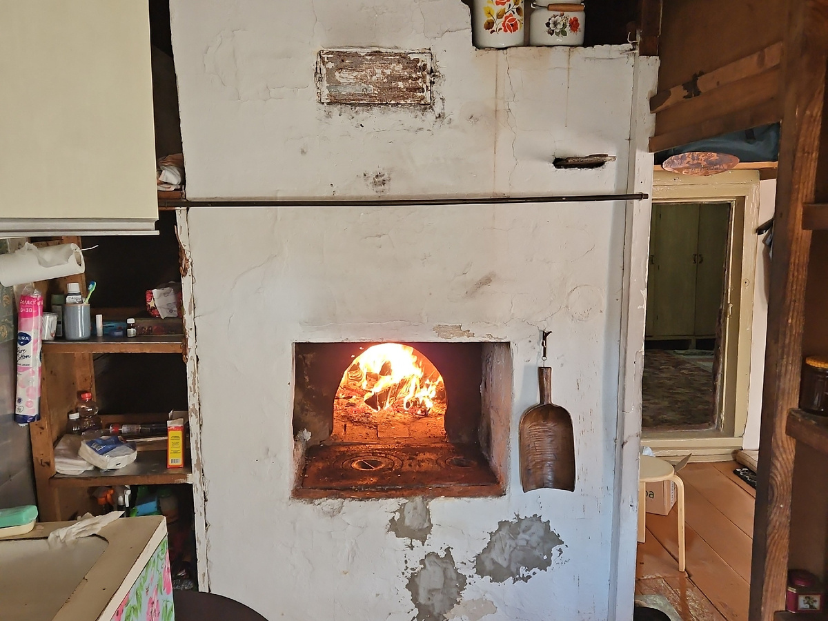 Сразу приступили к тестовой протопке. И - о, чудо! - печь не дымила! Ну, почти. Осталось одно место за вот этой доской, что прибита к печи справа. Там явно трещина еще есть, но залить туда замазку я так и не смогла. А снимать доску мы не рискнули, т.к. велика вероятность только усугубить проблемы. Нафиг. Эта протечка на столько незначительна, что решили на нее плюнуть. А сам по себе способ оказался более чем рабочим. Я потом еще несколько дней скакала с тазиком и замазывала все, что попадалось под руку ,в т.ч. и в бане. Смесь застывает достаточно быстро и исправно держит дым. Да, очень крупные трещины таким способом вряд ли можно замазать, но для ситуативного срочного ремонта небольших огрехов отлично годится. А еще она прекрасно хранится. Брошенный на улице тазик с остатками легко разводился водой через пару дней и был готов к использованию.