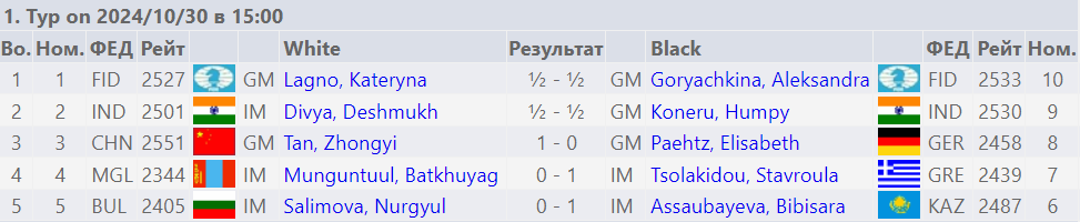Екатерина Лагно в дебюте решила удивить соперницу и разыграла итальянскую партию, что для неё редкость. Но столкнулась сама с проблемами. Александра Горячкина оказалась хорошо готова, применила очень интересный и редкий план. В миттельшпиле имела шанс получить перевес, но потеряла нить игры, запуталась и получила проиграно. Екатерина Лагно очень хорошо играла, но в цейтноте под сильным давлением соперницы начала ошибаться. К 40 ходу позиция уравнялась, и соперницы согласились на ничью.
