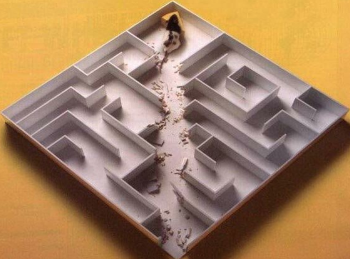Мышь, которая учится ориентироваться в лабиринте, чтобы добраться до еды, обладает таким интеллектом.