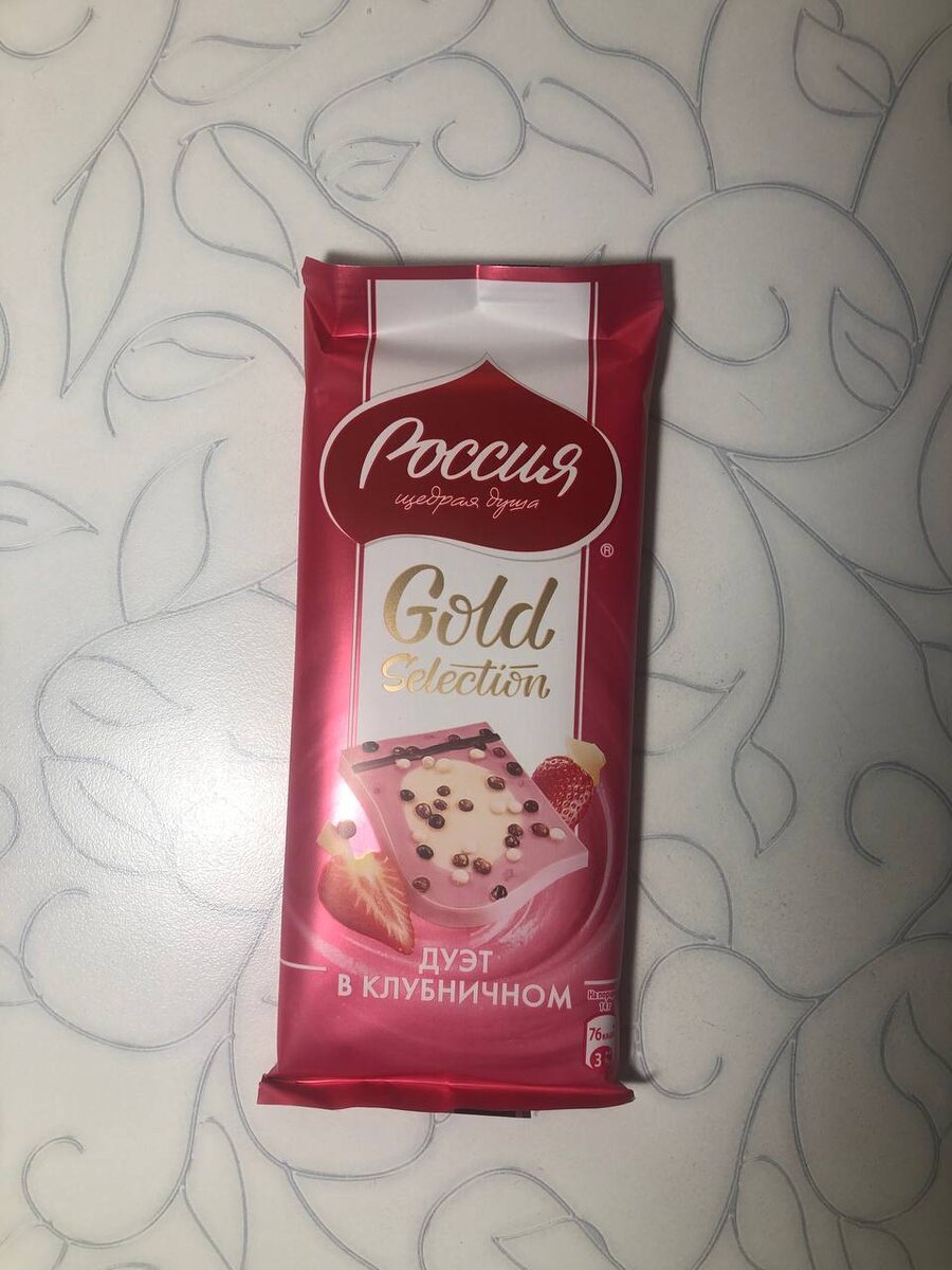 Сегодня я решил побаловать себя и купил в магазине «Магнит» шоколад «Россия щедрая душа» из серии Gold Selection со вкусом «Дуэт в клубничном». Цена — 120 рублей. Шоколадка очень красиво оформлена и отлично подойдёт в подарок для второй половинки. Мне особенно понравилось сочетание белого молочного шоколада и клубники — очень нежное и вкусное. В целом, я очень доволен этим шоколадом и ставлю ему оценку 5 из 5. И вам рекомендую его попробовать. Состав: белый шоколад (95,6 %) (сахар, масло какао, молоко сухое цельное, сыворотка молочная сухая, эмульгаторы (лецитины, Е476), ароматизатор натуральный), ДРАЖЕ "ЗЛАКОВЫЕ ШАРИКИ В БЕЛОМ, МОЛОЧНОМ И ТЕМНОМ ШОКОЛАДЕ" (сахар, какао тертое, масло какао, мука пшеничная (содержит глютен), мука рисовая, молоко сухое цельное, какао-порошок с пониженным содержанием жира, крахмал тапиоковый, лактоза, глазирователь (E904), молоко сухое обезжиренное, эмульгатор (лецитины), соль, стабилизатор (карбонат кальция), сыворотка молочная сухая, глюкозный сироп, ар