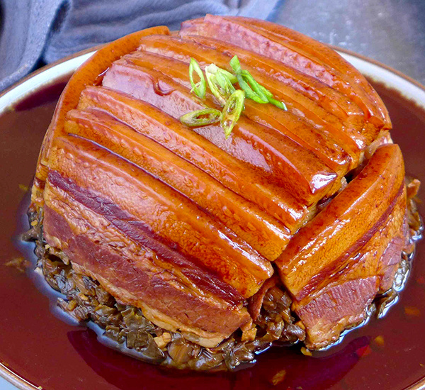 Как и «Львиные головы», Мэй Цай Коу Жоу — это банкетное блюдо, которое поднимает любое застолье на новый уровень. Это одно из самых популярных блюд на Китайский Новый год, состоящее из тонких ломтиков свиного брюха, приготовленных до состояния, когда мясо тает во рту, и подается на слое ароматного квашеного горчичного листа (известного как Мэй Цай).