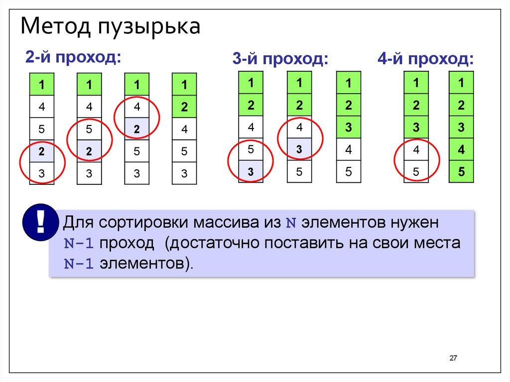 - Плюсы: Простой алгоритм для реализации, подходит для небольших массивов.