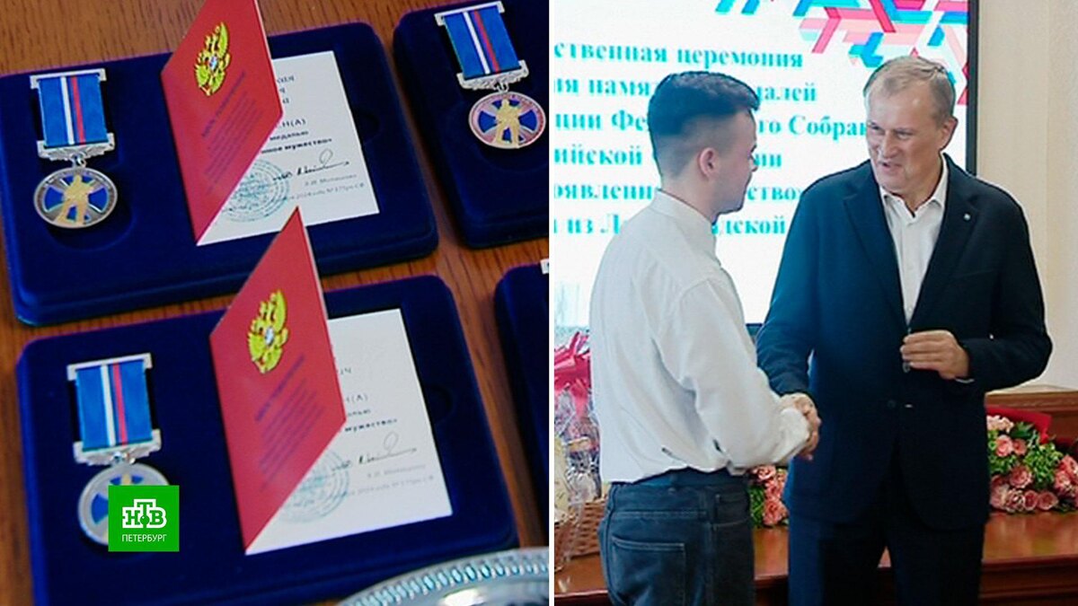 [ Смотреть видео на сайте НТВ ] Взрослые поступки юных ленинградских школьников сегодня отметили в правительстве области. Губернатор региона Александр Дрозденко и сенатор Сергей Перминов вручили детям и подросткам памятные медали Совета федерации «За проявленное мужество». Ребята отличились в трудных ситуациях, когда на раздумье были считаные секунды. Николай Цветков и Кирилл Добрынин спасли из воды тонущих людей, Максим Косарев и Глеб Чубиков помогли задержать злоумышленника, который похитил выручку у водителя автобуса, а сестры Стефания Архангельская и Маргарита Воробьёва вывели из горящего дома под Выборгом двух бабушек и младшую сестру. Пожар произошел в новогодние праздники, глубокой ночью, когда вся семья спала. Встреча прошла в неформальной обстановке за чашкой чая. На церемонии также поблагодарили родителей и педагогов, воспитавших юных героев. Глава региона Александр Дрозденко отметил: качества, которые ребята проявили в ситуации угрозы человеческой жизни, подчеркивают их стой