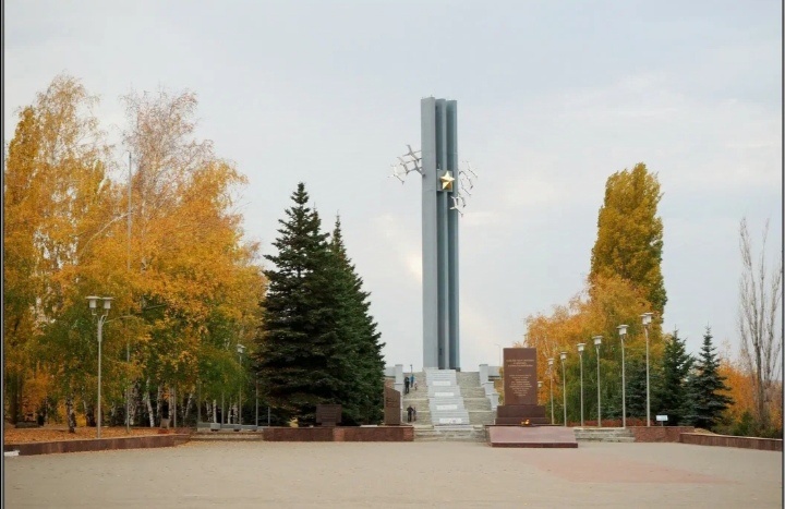 9 мая 1982 года сменивший Шибаева первый секретарь обкома В.К. Гусев торжественно открыл монумент: пять маршей парадной лестницы ведут к трем устремленным в небо пилонам, перечеркнутым журавлиным клином…