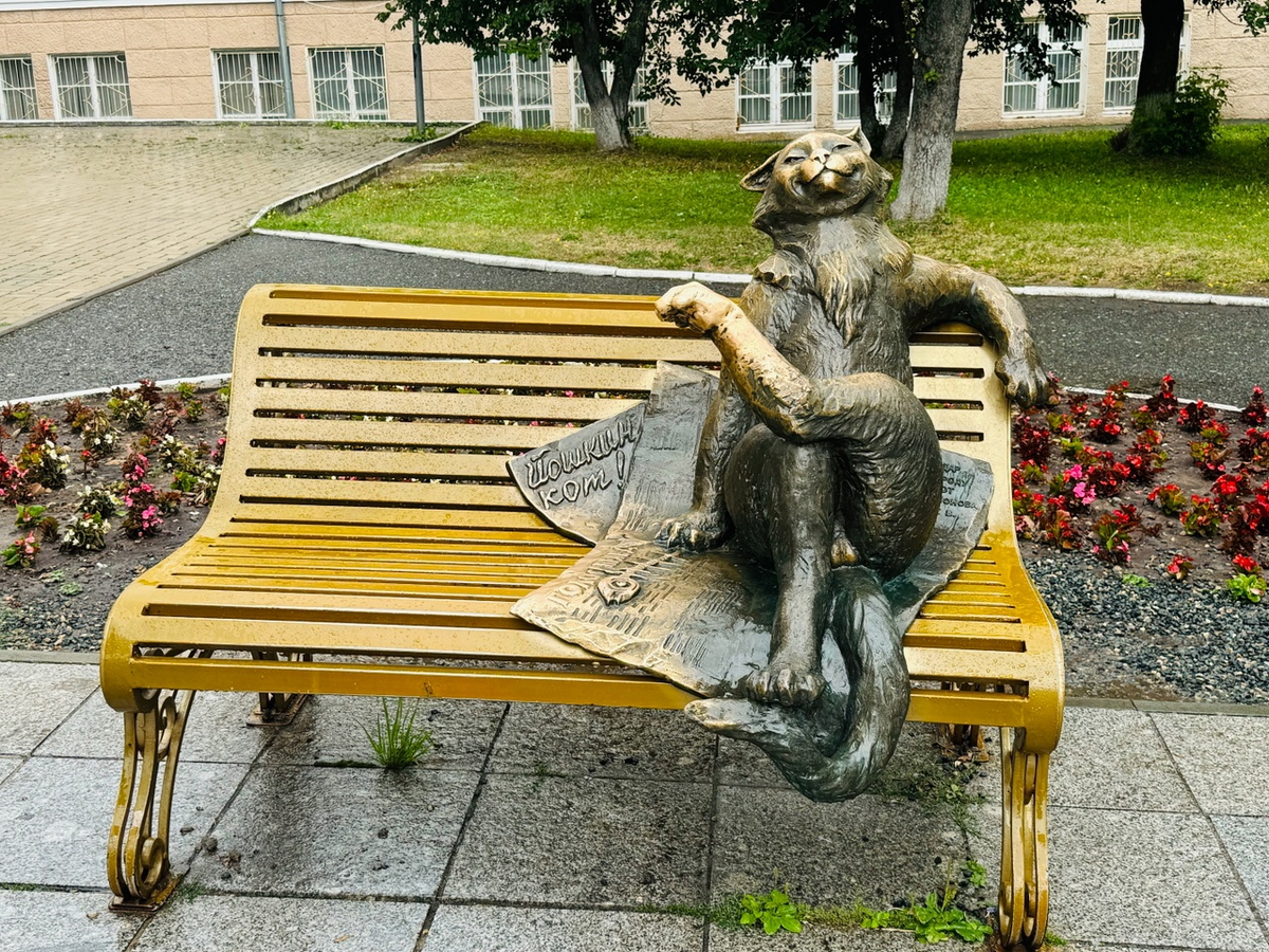 Милые пушистики давно и прочно вошли в нашу жизнь. И наша любовь к ним нашла воплощение во множестве памятников и в городских скульптур. В этой статье покажу свою подборку интересных памятников котикам в России. В Йошкар-Оле давно и прочно обосновалась целая кошачья семья: Йошкин кот - довольный жизнью котяра, отдыхающий на скамейке рядом с главным корпусом Марийского Государственного Университета: Йошкина кошка - утонченная изящная красотка с ожерельем на груди: И их миниатюрные котята, скульптуры которых разбросаны по всему городу. Говорят сейчас по поиску этих котят организован целый квест. Но мы нашли буквально двух. Котика с монеткой у здания банка: И котика с рыбкой на набережной: Свой большой упитанный кот есть и в Казани. Казанский кот — это легендарный персонаж, который, по легенде, спас казанского хана во время осады города войсками Ивана Грозного в 1552 году. Памятник Казанскому коту находится на главной пешеходной лице Казани - улице Баумана: Котиков в Нижнем Новгороде