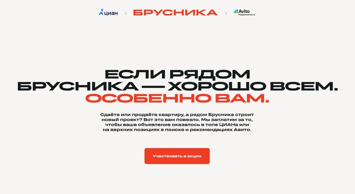 Брусника выдала на днях бомбический креатив, доказав, тем самым, что сегодня в маркетинге рулит креативный подход и нестандартное мышление. Давайте расскажу в чем суть... Скажу сразу, что пост не рекламный, мне лично Брусника ничего не платит за эту публикацию, хотя я бы конечно не отказался - как-никак, а у меня топовый канал для агентов 🤣 Итак. Если вы сдаёте или продаете жилой объект в радиусе 1.5 км от любого из проектов Брусники, и рекламируете его в ЦИАН или Авито, то вставив в текст объявления слова "... потому что рядом Брусника" вы получите от девелопера компенсацию продвижения на три дня. Все что вам нужно - это отправить ссылку на объявление и чек оплаты стоимости продвижения! Все! Отправляется это все на сайте Брусники, есть понятный и простой одностраничник с заполняемой за 30 секунд формой. Гениально! Понимаете, что происходит? Присутствие в классифайдах бренда, информирование потенциальных покупателей и арендодателей (которые завтра могут стать покупателями) о проекте д