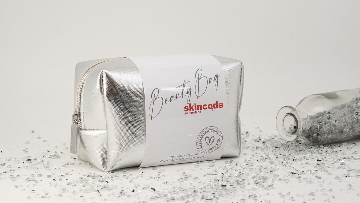 Первое, на что обращаешь внимание, - конечно же, оформление. На этот раз перед нами не привычная коробочка PharmaBeautyBox, а серебристая косметичка из искусственной кожи с логотипом Skincode. Смотрится стильно. Косметичка вместительная, качественно выполнена, отлично подойдет для поездок.