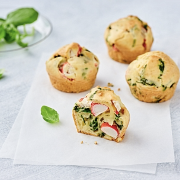 Воздушные маффины с крабовыми палочками и шпинатом