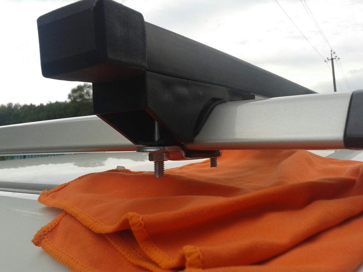 Июнь 2018 г. Заехал на авторынок, купил самые простые поперечины на рейлинги, не стал заморачиваться на аэродинамику, так как нужны они будут не так часто. крепления регулируемые, есть прокладочки, чтобы не царапать рейлинги.