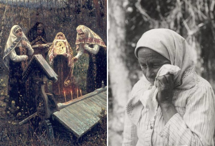 В старину на похоронах на Руси не было принято видеть мужчин в роли плакальщиков. Эту честь возлагали исключительно на женщин, которые символизировали домашний очаг и землю, дающую жизнь и принимающую тела людей после смерти.
