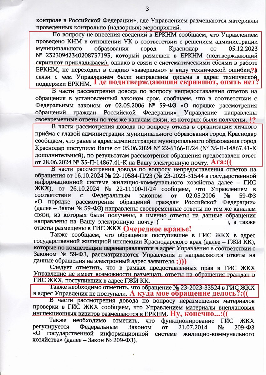 Здравствуйте, уважаемые гости и подписчики моего канала! ГЖИ Кубани говорит, что направило моё обращение в УЖВ администрации. УЖВ администрации, при этом меня оповещает, что якобы материал с моей жалобой ... к ним не поступал. При этом, даже не назначается и не проводится служебная проверка на предмет, а направлял ли госжилинспектор Хизриев действительно мое обращение в УЖВ? Согласно порталу ГИС ЖКХ достоверно установлено, что Хизриев жалобу в УЖВ всё же направил. Неоднократно через портал "Госуслуги" я писал жалобы в ГП РФ, но, как известно, ГП РФ сразу скинула мои жалобы в прокуратуру Кубани, а прокуратура Кубани, без вмешательства, направила мою жалобу...туда, на кого я пожаловался, т.е. в УЖВ администрации! УЖВ администрации "провела проверку сама на себя" и, внезапно, "нарушений не выявило". Правильно! Кто же будет себя наказывать, когда пропал материал именно в УЖВ? Прокуратура "проходит мимо", вместо принятия мер прокурорского реагирования: вынесения представления о нарушении