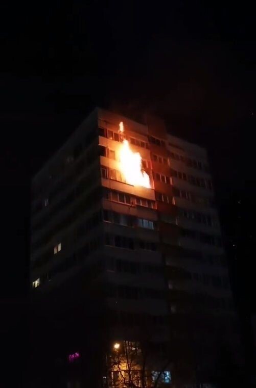 Появилось видео пожара на Руднева, где эвакуировали 35 человек
