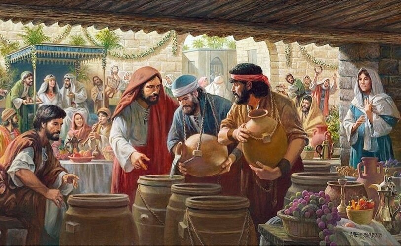 “На третий день была свадьба в Кане галилейской, и мать Иисуса была там. Был также зван Иисус и ученики Его на брачный пир. И как недоставало вина, то мать Иисуса говорит Ему: «Вина нет у них». Иисус говорит ей: «Что Мне и тебе, женщина? Еще не пришел час Мой». Мать Его сказала служителям: «Что скажет Он вам, то сделайте». Было же тут шесть каменных водоносов, стоявших по обычаю очищения иудейского, вмещавших по две или по три меры. Иисус говорит им: «Наполните сосуды водой». И наполнили их доверху. И говорит им: «Теперь почерпните и несите к распорядителю пира». И понесли. Когда же распорядитель отведал воды, сделавшейся вином, — а он не знал, откуда это вино, знали только служители, черпавшие воду, — тогда распорядитель зовет жениха и говорит ему: «Всякий человек подает сперва хорошее вино, а когда напьются, тогда худшее; а ты хорошее вино сберег до сих пор». Так положил Иисус начало чудесам в Кане галилейской и явил славу Свою; и уверовали в Него ученики Его” (Ин. 2:1-11).