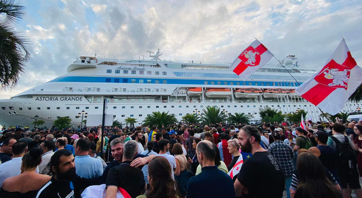 Когда «Astoria Grande» прибыла в Батуми рано утром, на причале собралась протестующая толпа. По данным материалов дела, пассажирам запретили выходить на сушу и даже на прогулочные палубы с видом на город.