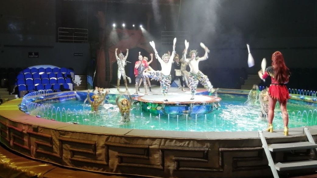 Жонглёры, силовые акробаты, клоуны, воздушные гимнасты, дрессировщики — «Одиссея» вместила в себя лучшие и классические номера циркового искусства. И конечно, фактор воды учитывается в каждом выступлении.