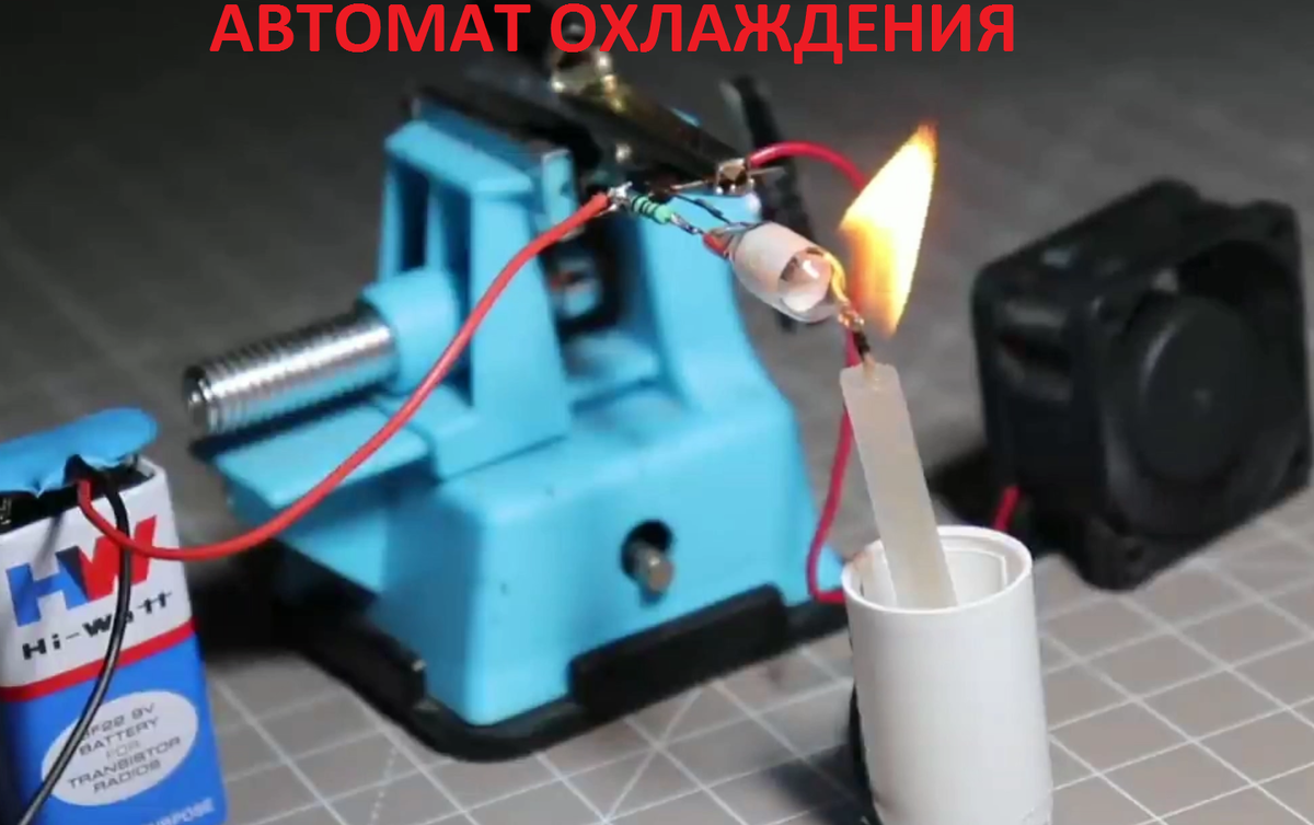 На картинке мы видим устройство которое Автоматически при нагревании включает вентилятор питаемый батарейкой "крона".