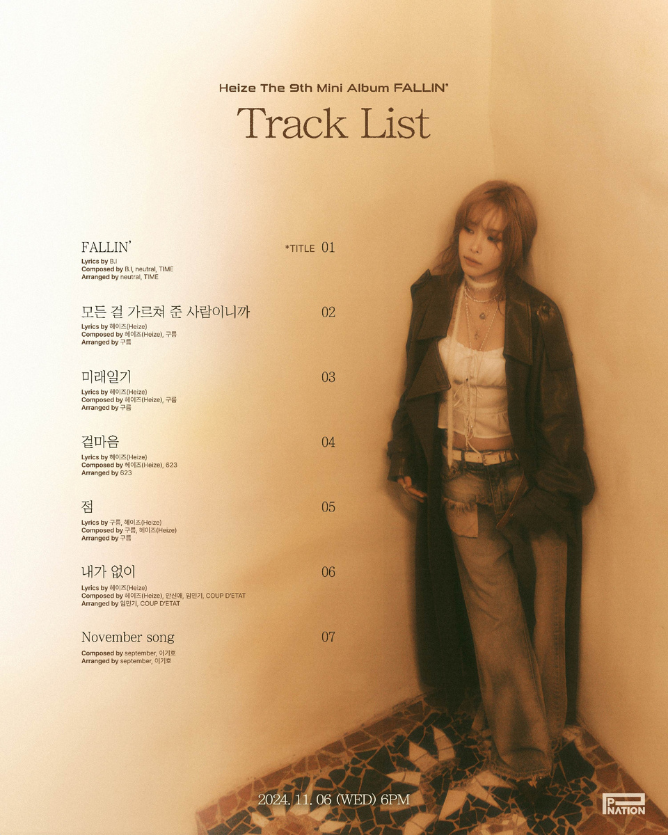 Известная певица Хейз (Heize) представила свою новую осеннюю работу. 30 сентября компания P Nation анонсировала её мини-альбом под названием "Поллин" (FALLIN) в социальных сетях, поделившись треклистом, который включает семь композиций. Среди них заглавный трек "Поллин" (FALLIN), а также "Все, что ты мне научил" (모든 걸 가르쳐 준 사람이니까), "Дневник будущего" (미래일기), "Скрытые чувства" (겉마음), "Точка" (점), "Без меня" (내가 없이) и "Ноябрьская песня" (노벰버 송). Заглавная композиция "Поллин" (FALLIN) погружает слушателей в мир ностальгии, отражая ощущения утраты и неопытной любви. Хейз виртуозно передала осеннее настроение с помощью своего уникального вокала. Она активно участвовала в создании альбома, будучи автором текстов и композиций, и её имя указано в кредитах пяти треков. Несколько песен написаны ею самостоятельно, что подчеркивает её творческий вклад. Представители P Nation выразили надежду на успешное возвращение Хейз после почти годичного перерыва, связанного с её предыдущим мини-альбомом. Они