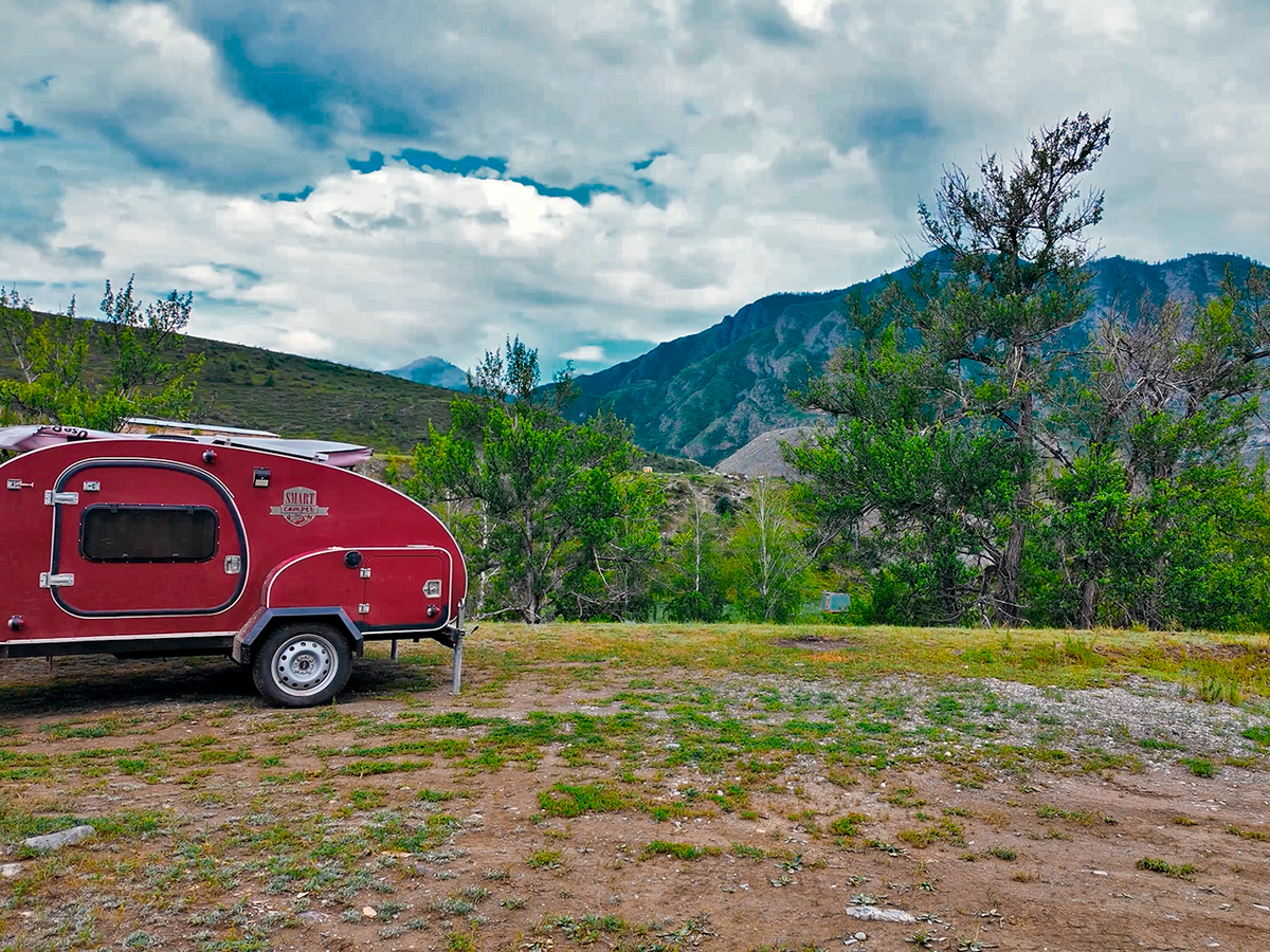 Когда мы готовились к поездке на Алтай, то не нашли информации, где можно удобно встать лагерем с домом на колесах. Стало очевидно, что придется уже по дороге высматривать площадки, которые подходят под наши запросы. Для себя мы выделили 6 важных критериев для выбора места отдыха при путешествии с прицепом-кемпером. У нашего кемпера всего один упор спереди для регулировки его расположения по горизонтали. Выдвижные ноги справа и слева, необходимы только для того, чтобы зафиксировать кемпер.