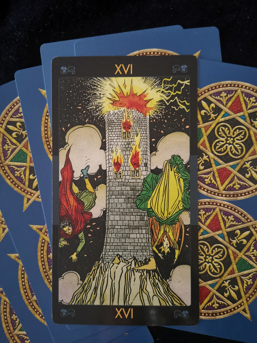Самое лучшее, что можно сделать - не сопротивляться переменам. Примите их, и ситуация не будет так болезненна. Несмотря на острый шок и потрясение, если всё рушится, это ли не повод избавиться от хлама? Через боль мы обретаем силу. Астрологическое соответствие: Марс Каббалистическая буква: Пе Путь на Древе Жизни: от Нецах (Победы) к Ход (Славе) Иногда, появившись в раскладе, "Башня" способна напугать клиента даже больше, чем предыдущая карта "Дьявол". Мы привыкли связывать её с переворотом, экстремальными ситуациями и насилием. Но с одной стороны, это совершенно явное освобождение: власть "Дьявола" низвергнута. Если материалист "Дьявол" говорит об ограниченности нашего восприятия, то "Башня" фиксирует момент осознания высокой истины о нашей подлинной духовной природе. Реальность снова переворачиваться вверх тормашками, и куда более радикально, чем в "Повешенном", - потому что и люди в большинстве версий этой карты валятся с башни вниз головой. В самой своей экстремальной и радостной