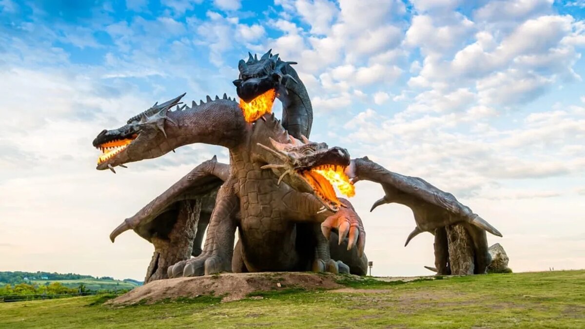 На «Кудыкиной горе» много интересного для детей и взрослых. И тех, и других удивит 15-метровая фигура трехголового Змея Горыныча, из пастей которого вырывается пламя. Правда, чтобы увидеть огненное шоу, надо подгадать время. «Оживает» Горыныч по расписанию: с пятницы по воскресенье и в праздничные дни в 18:00.